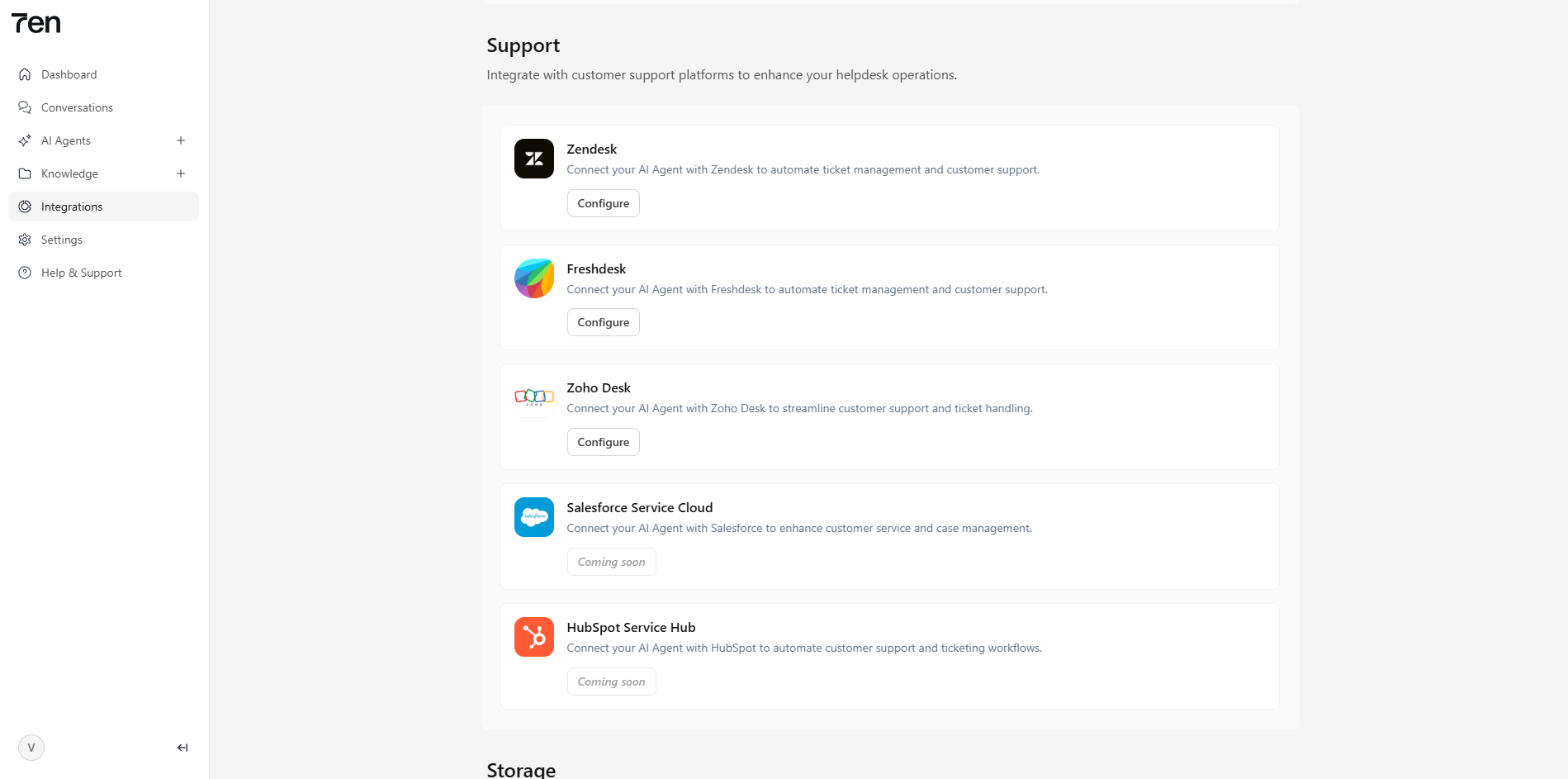 Follow these steps to connect Zendesk to 7en.ai, with visual aids to ensure a smooth setup process.