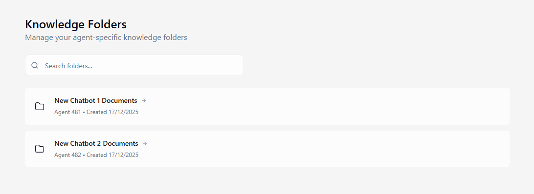Access: Simply click on a folder card to open the detailed management view for that specific agent.