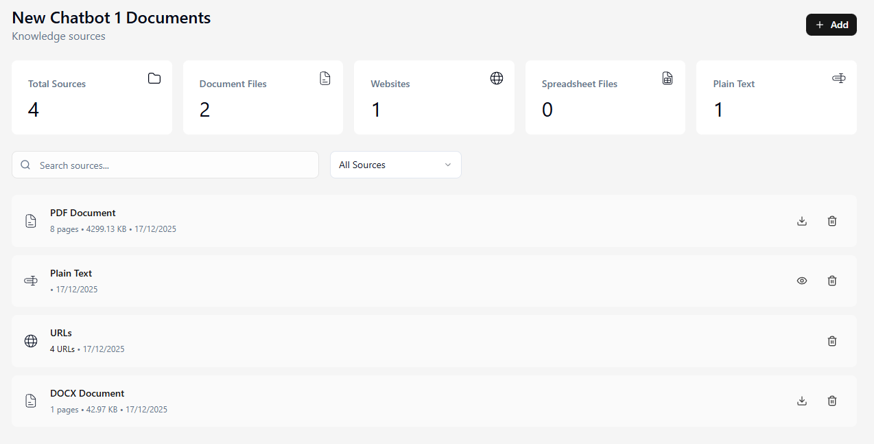 Inside a specific folder, you have full control over the individual files and links that the agent uses to generate answers.